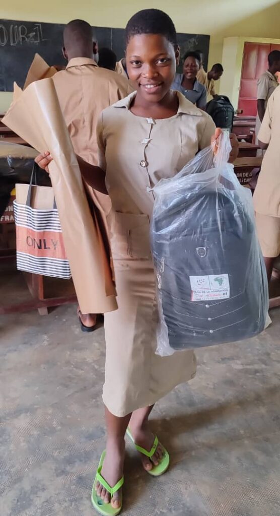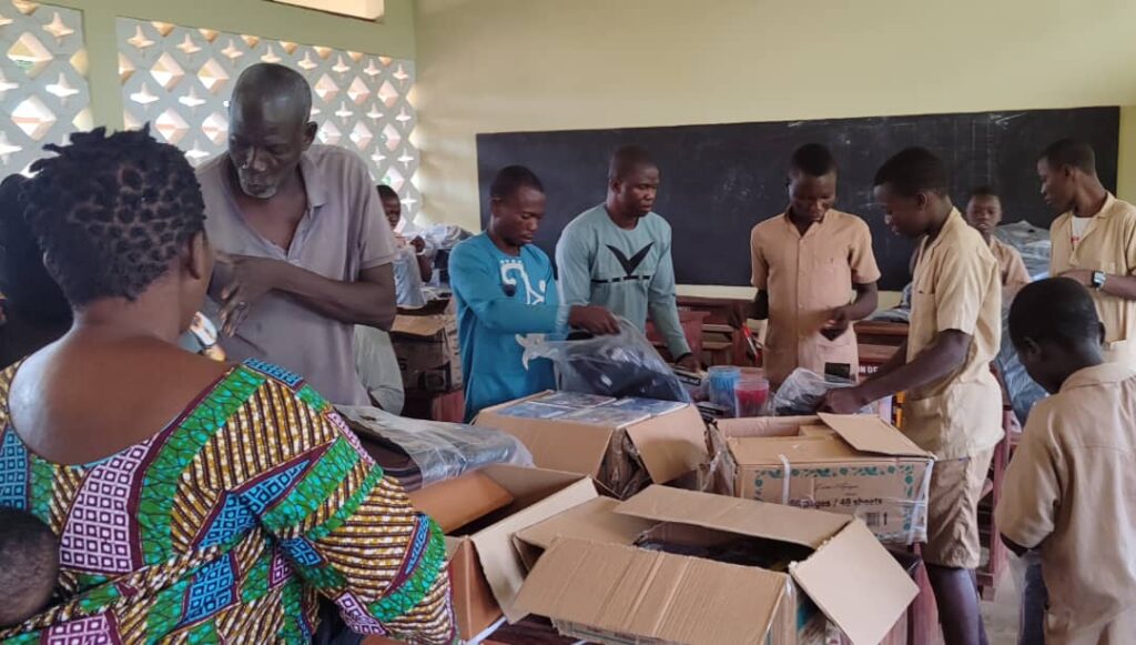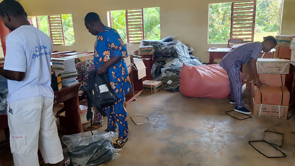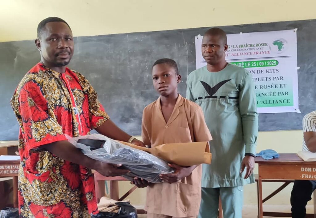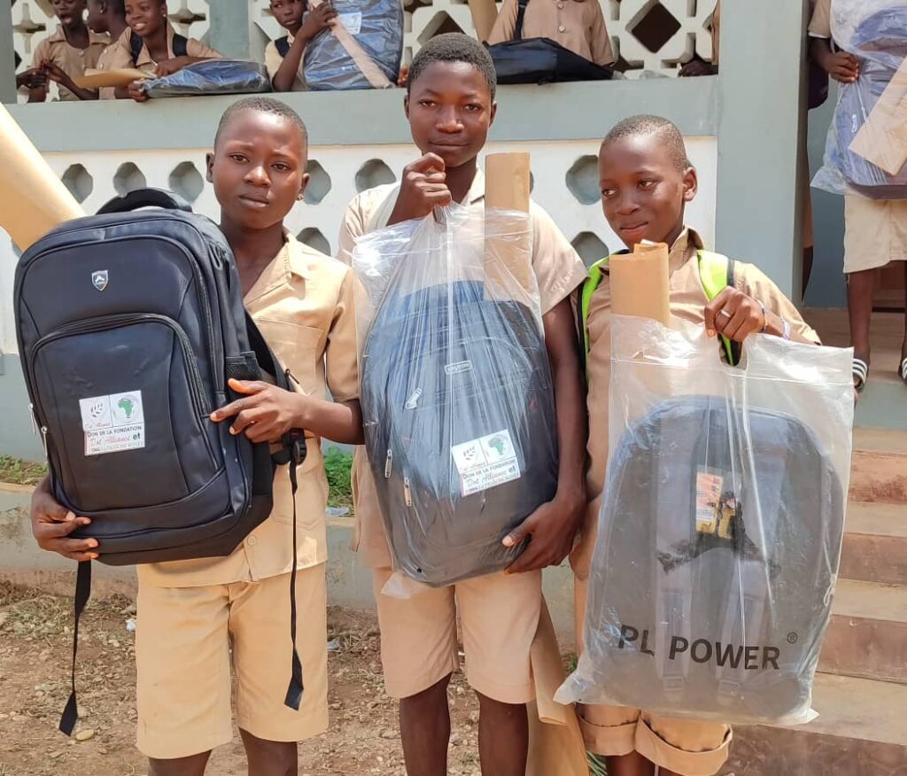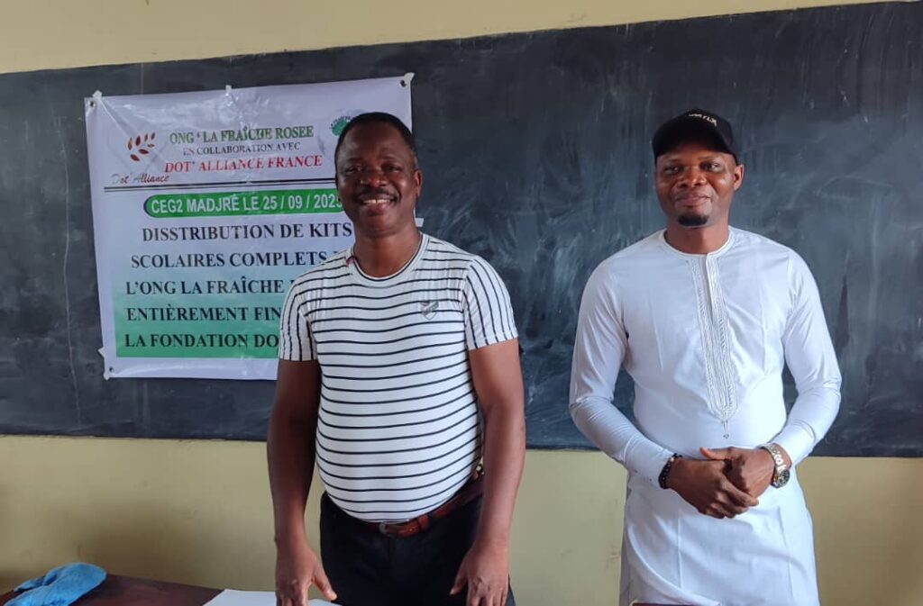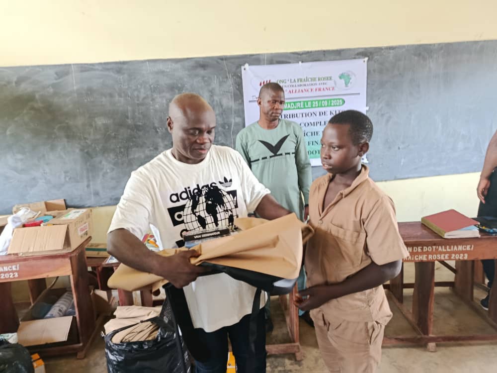 Distribution des fournitures scolaires aux familles en difficulté sur le Groupe Scolaire de Madjrè au Bénin dont Dot alliance a financé grâce à vous la construction.