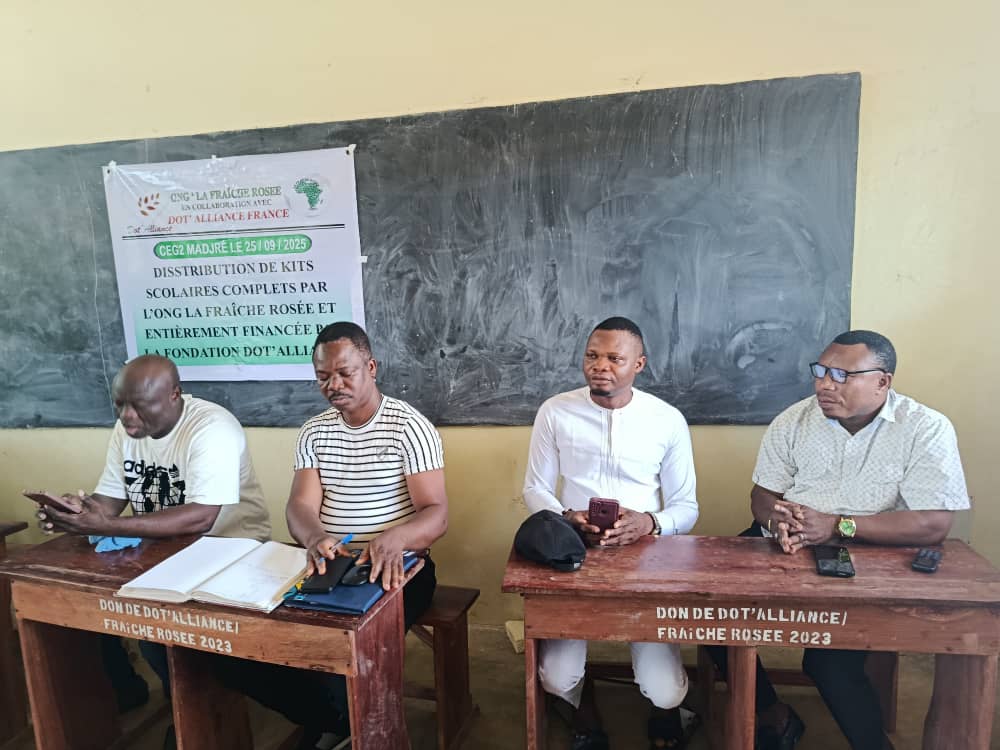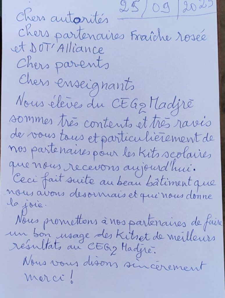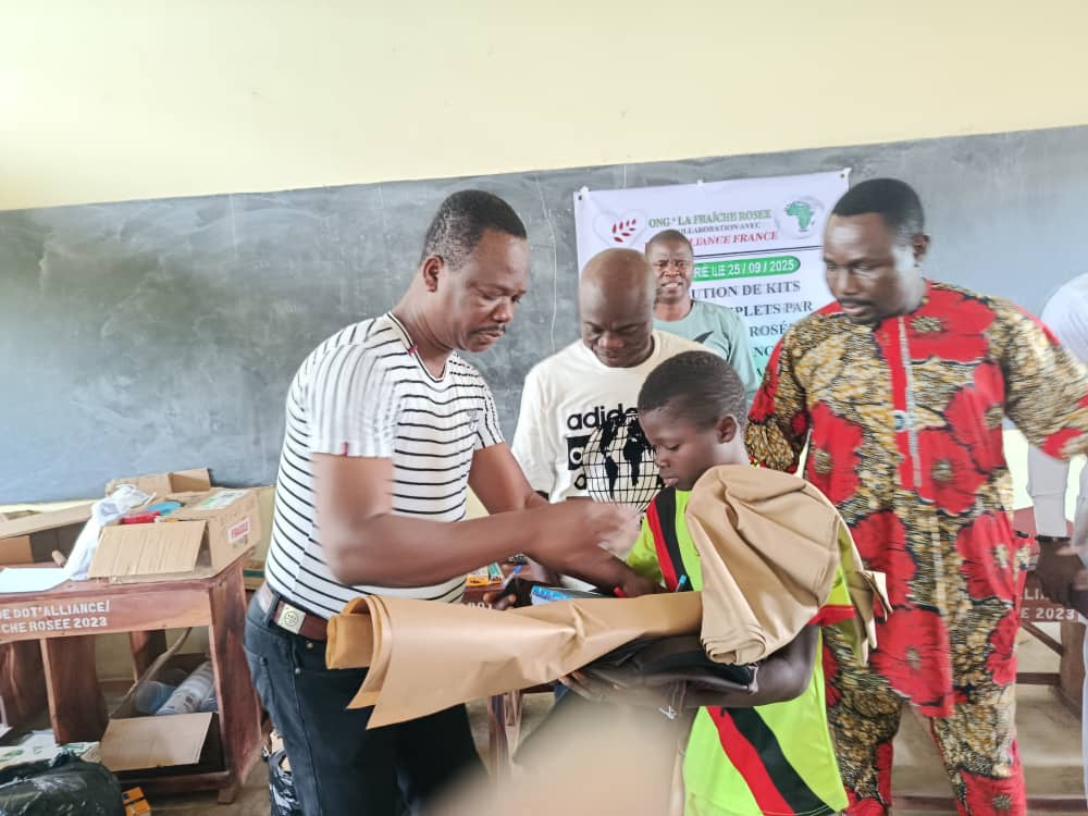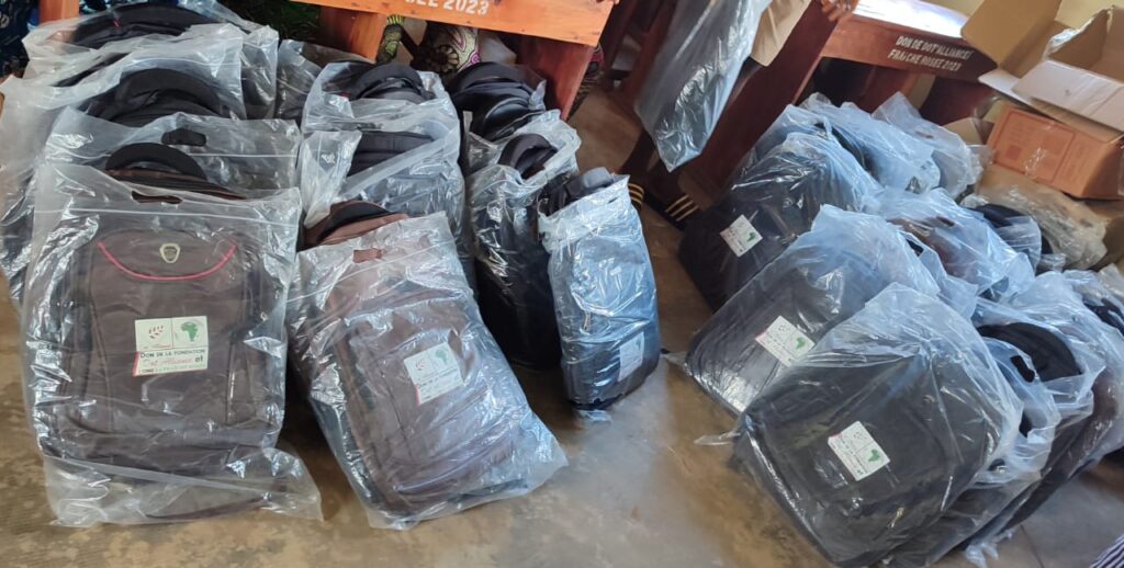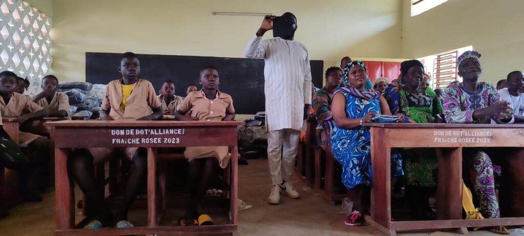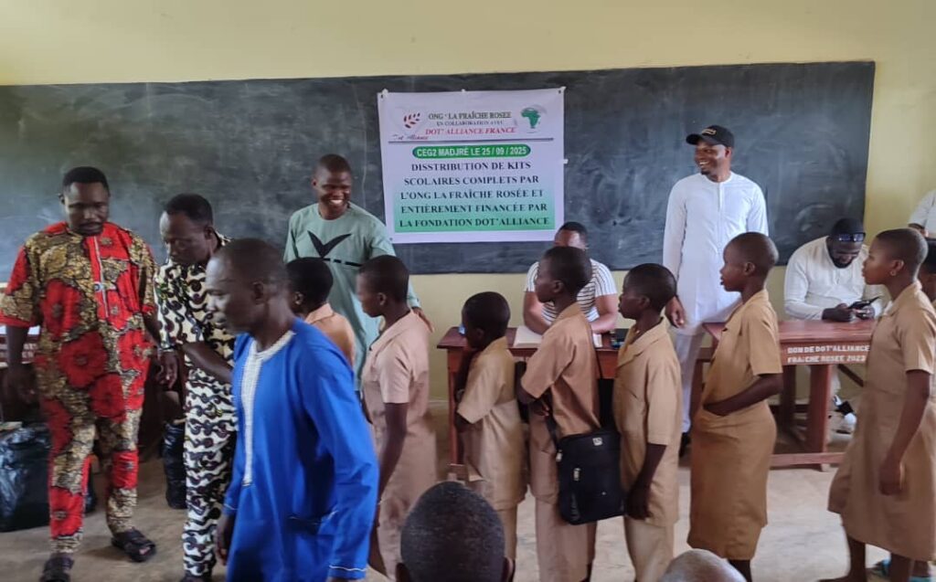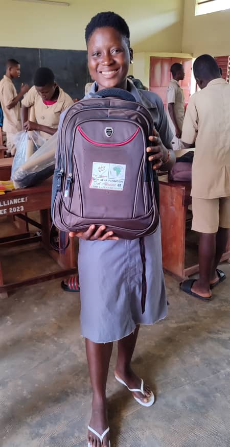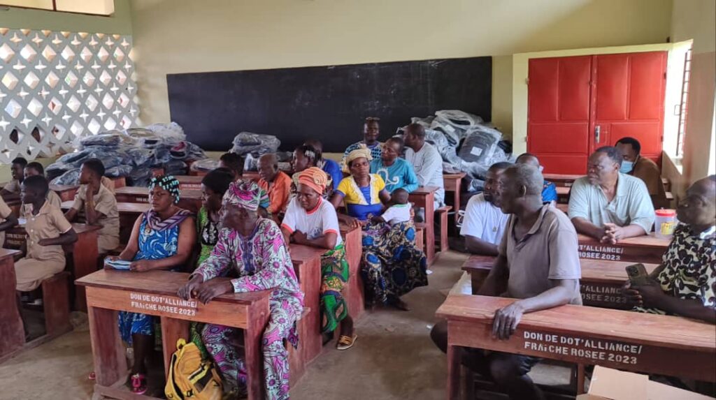 Distribution des fournitures scolaires aux familles en difficulté sur le Groupe Scolaire de Madjrè au Bénin dont Dot alliance a financé grâce à vous la construction.