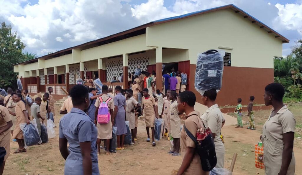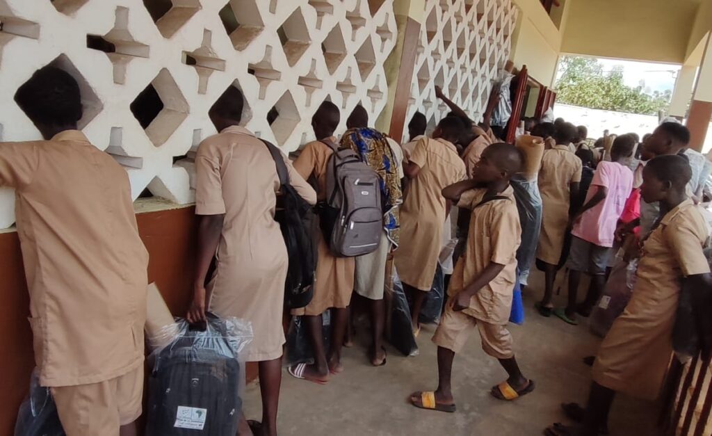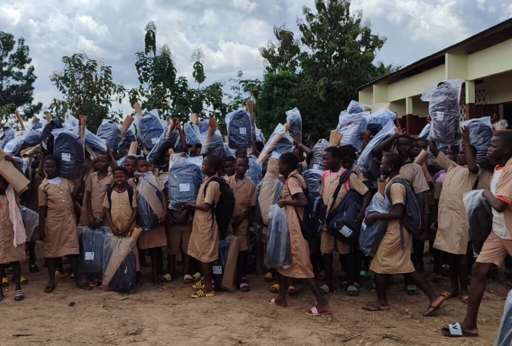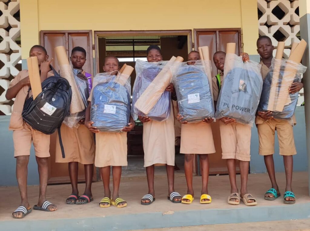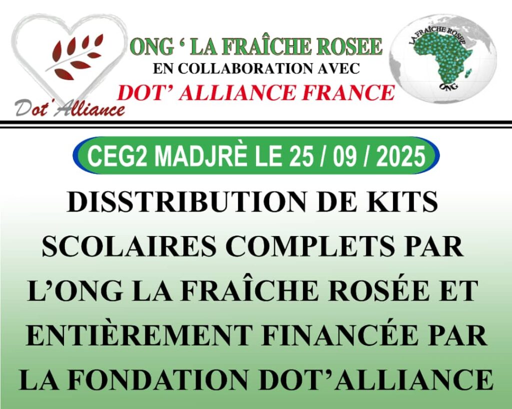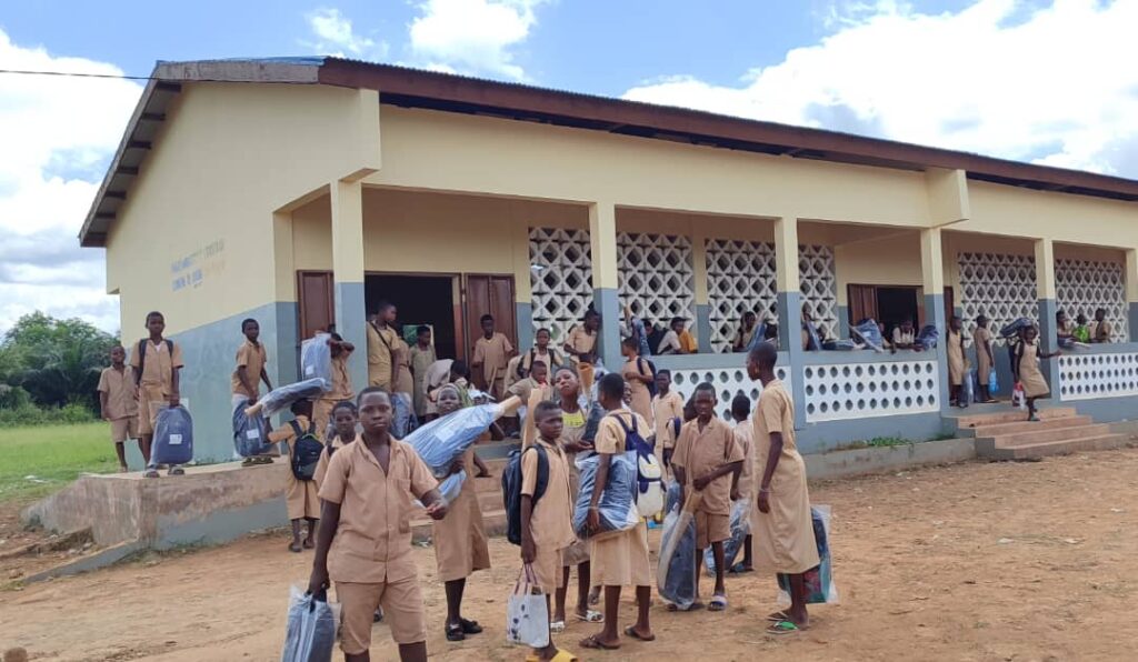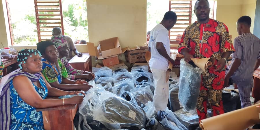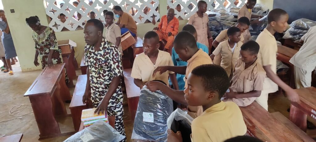Distribution des fournitures scolaires aux familles en difficulté sur le Groupe Scolaire de Madjrè au Bénin dont Dot alliance a financé grâce à vous la construction.