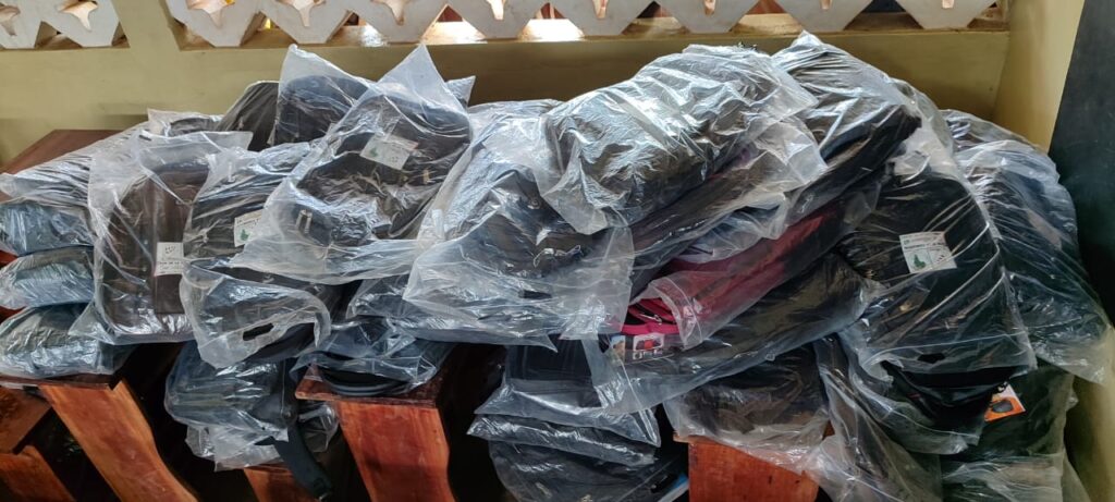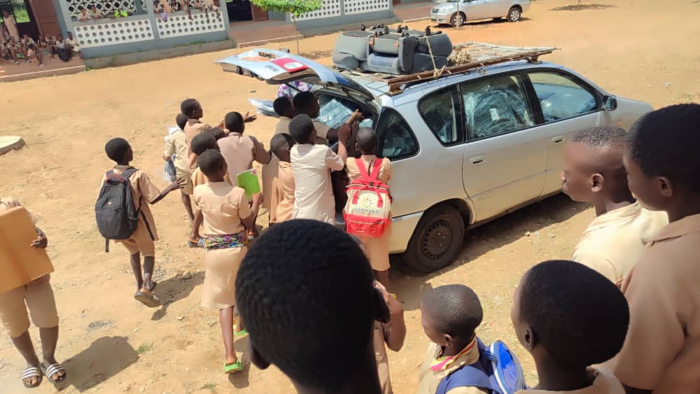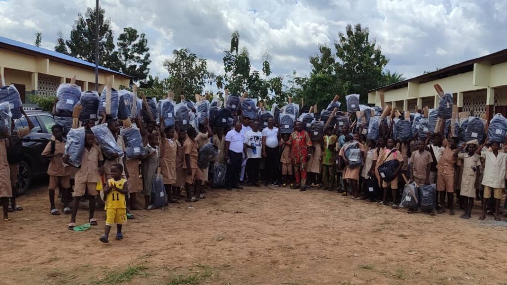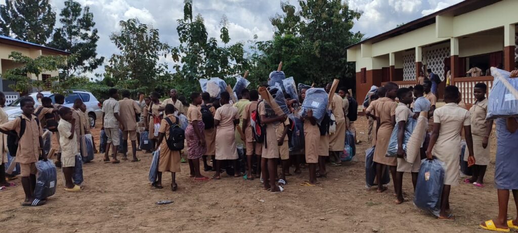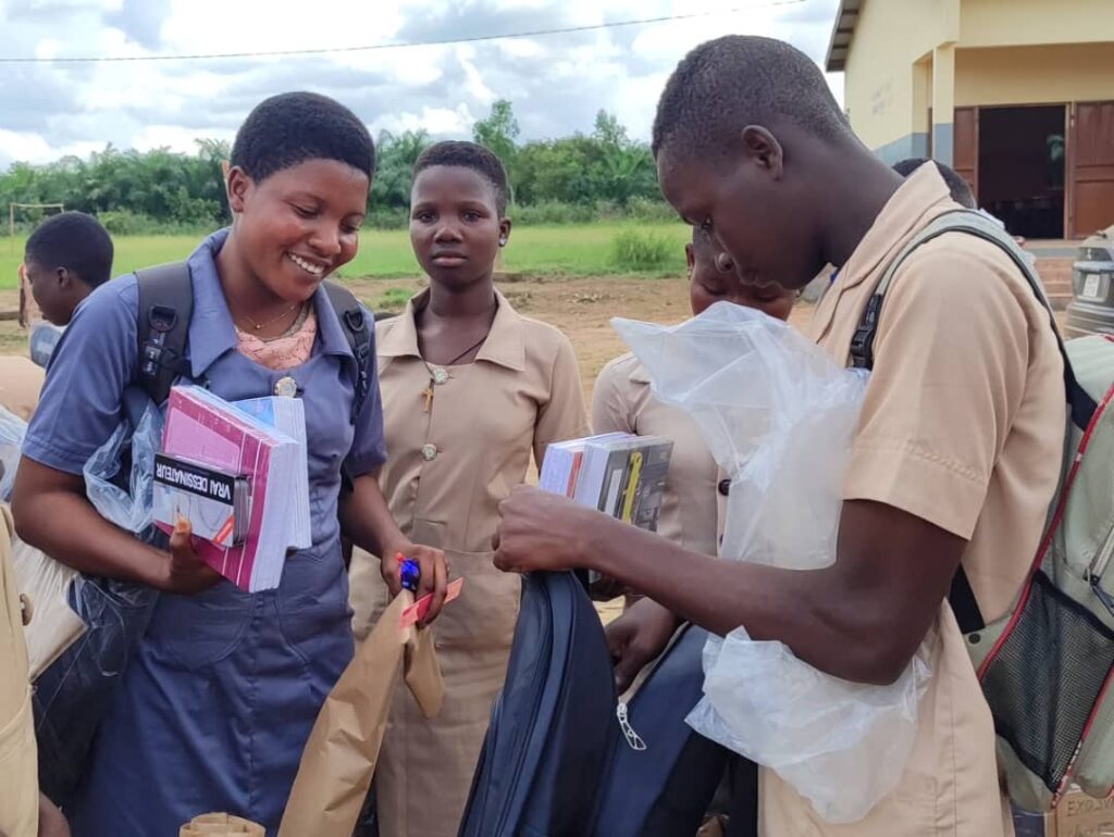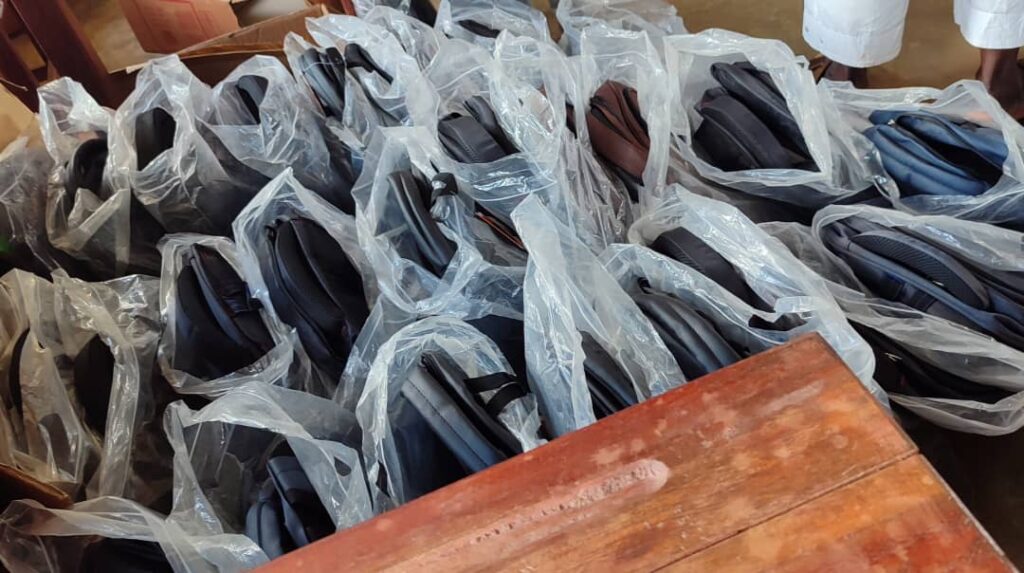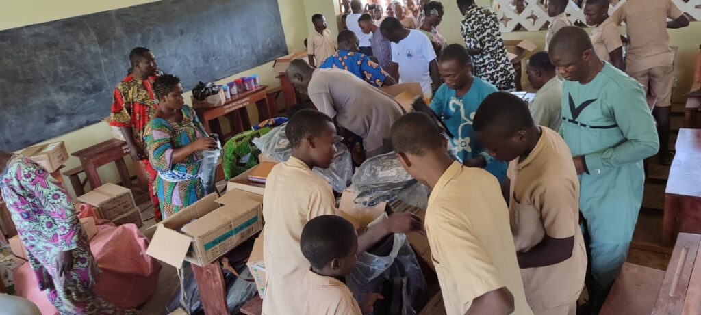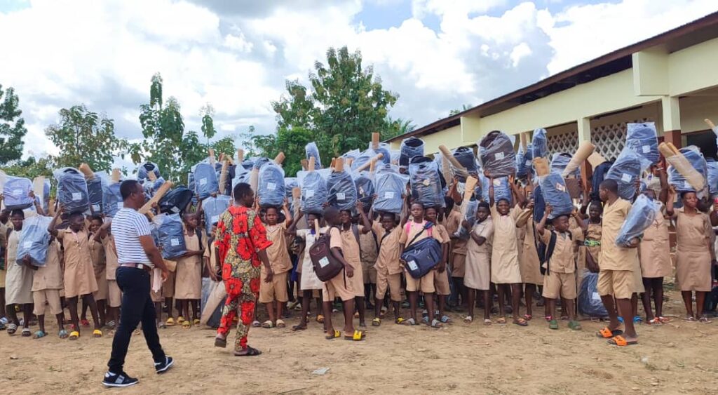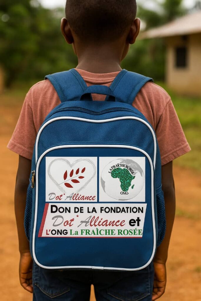 Distribution des fournitures scolaires aux familles en difficulté sur le Groupe Scolaire de Madjrè au Bénin dont Dot alliance a financé grâce à vous la construction.